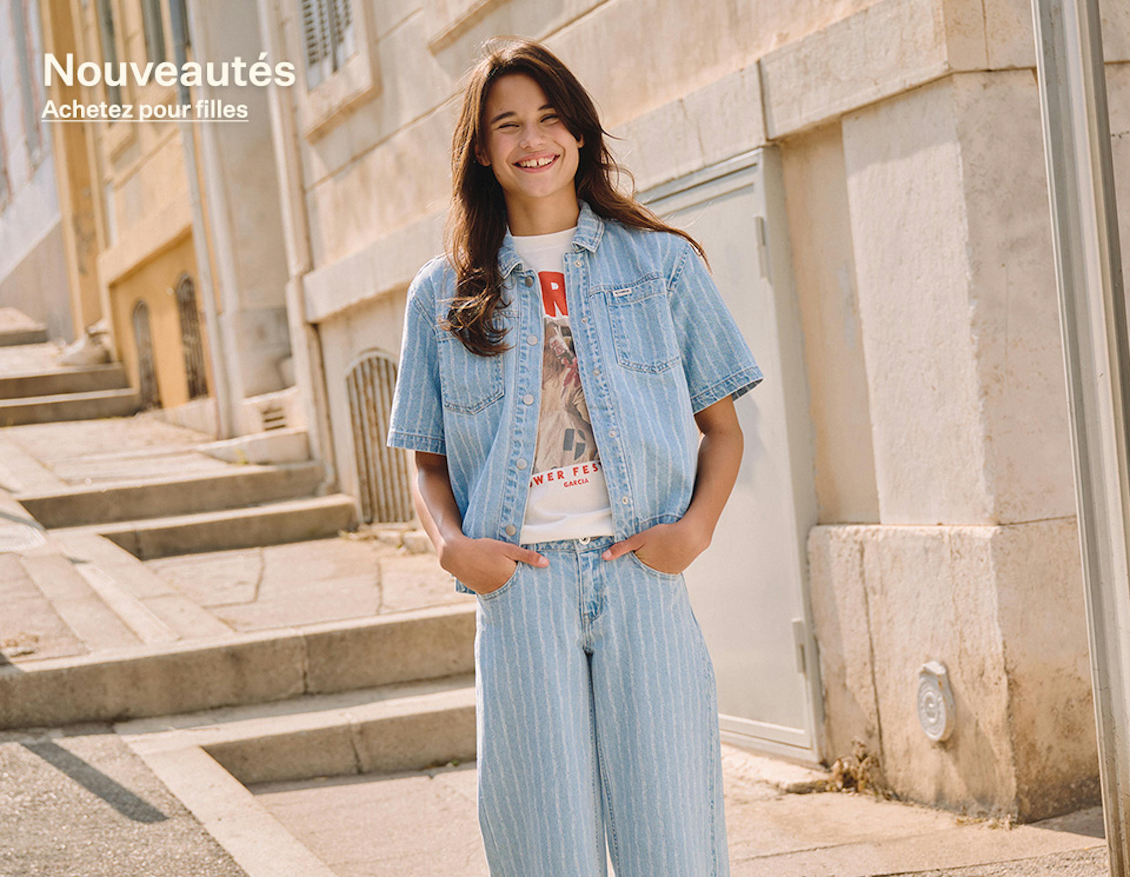 Pour les enfants, Garcia propose une large sélection de vêtements. La collection teens (tailles 128 à 176) offre des jeans, pièces tendance et accessoires pour filles et garçons.